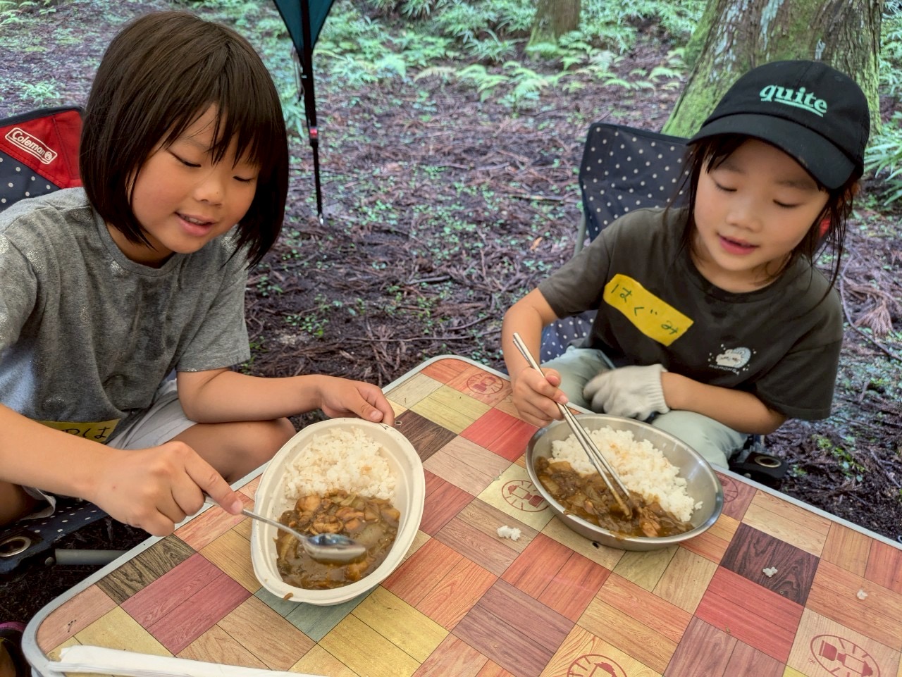 アルミ缶でご飯を炊き、ダッチオーブンでカレーを煮込み、美味しいカレーライスの完成〜!