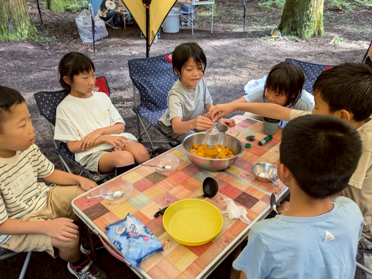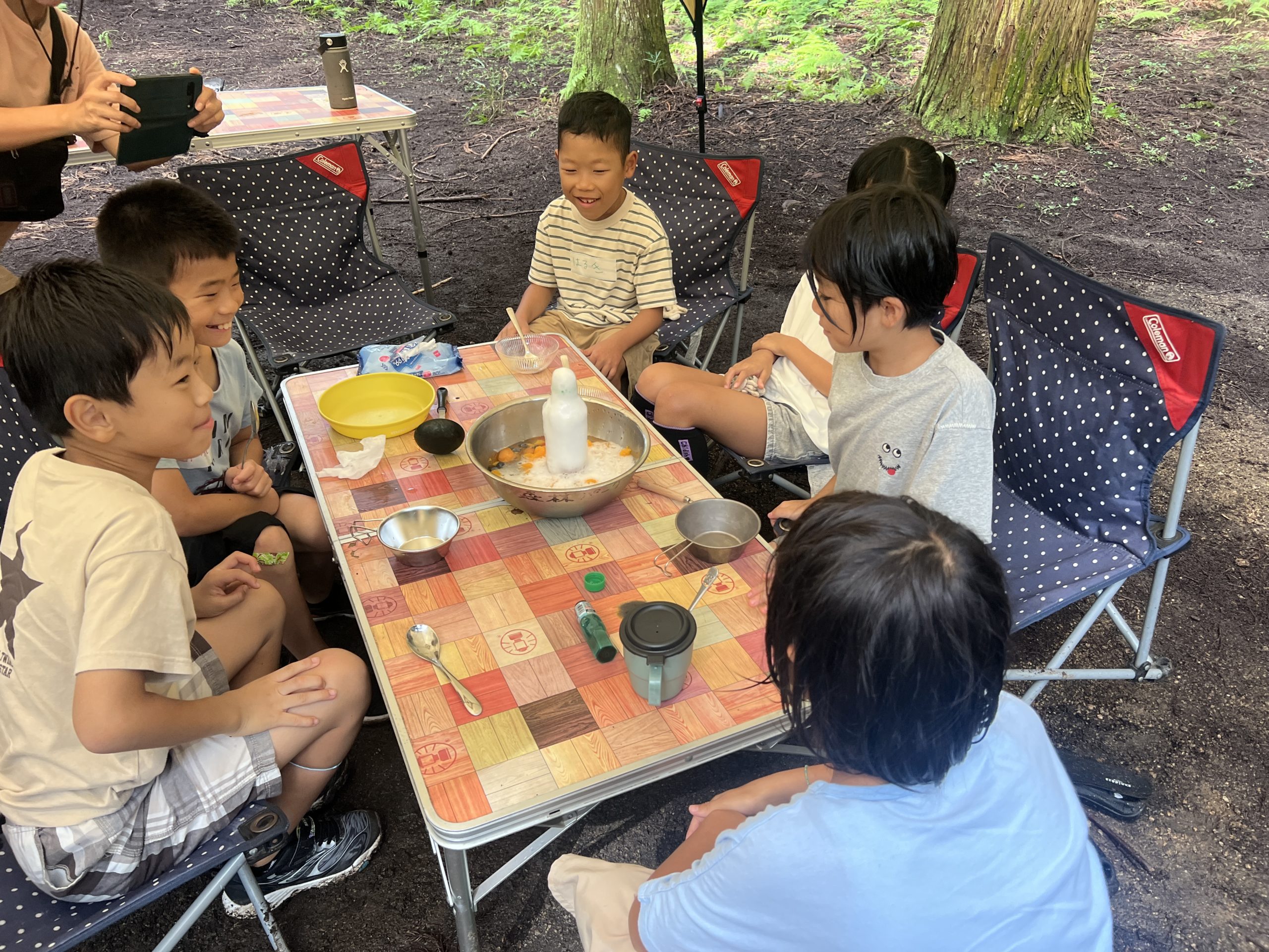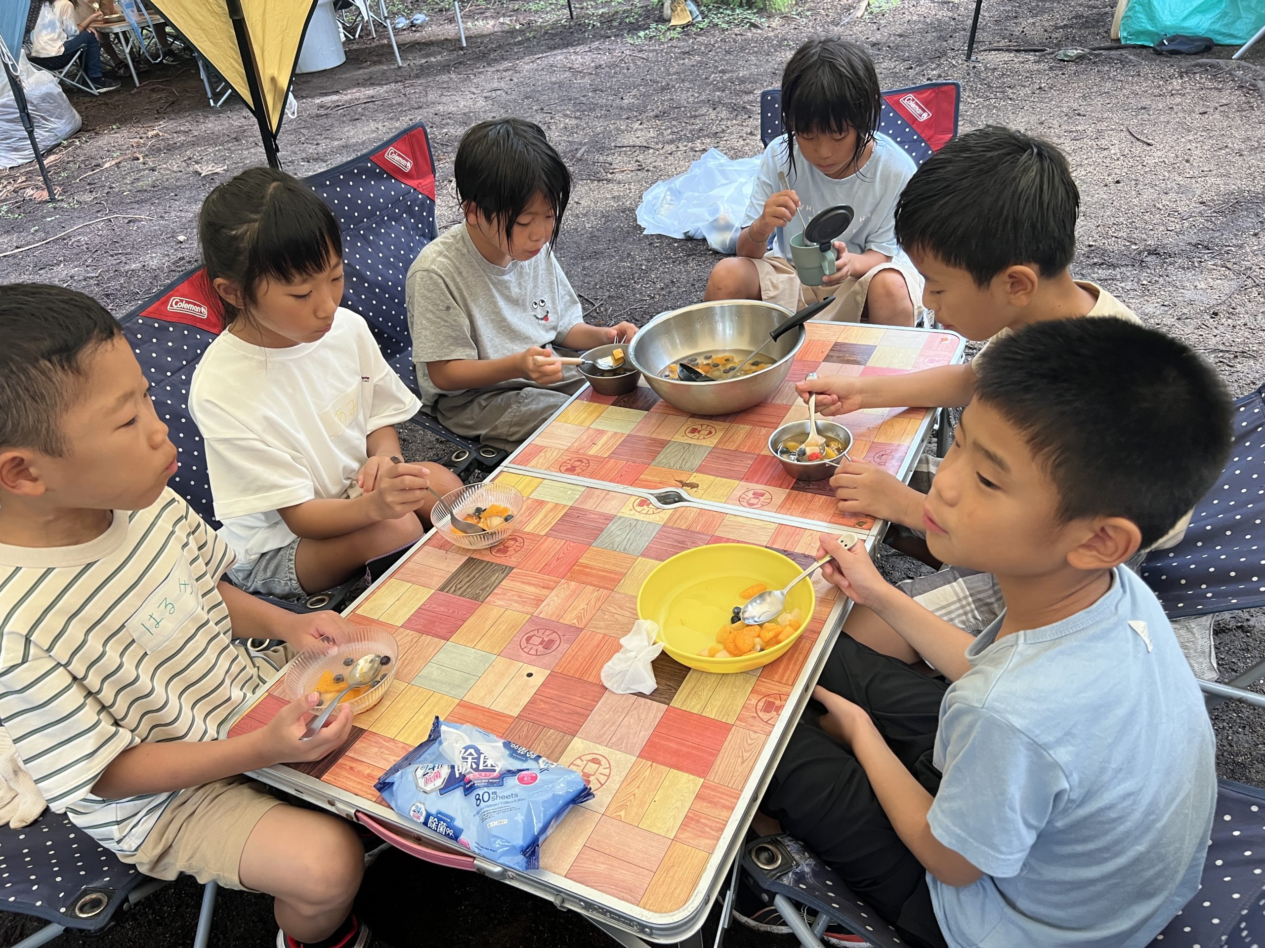 川から上がって、おやつタイム🎶「フルーツポンチ」を行いました🍒🍑