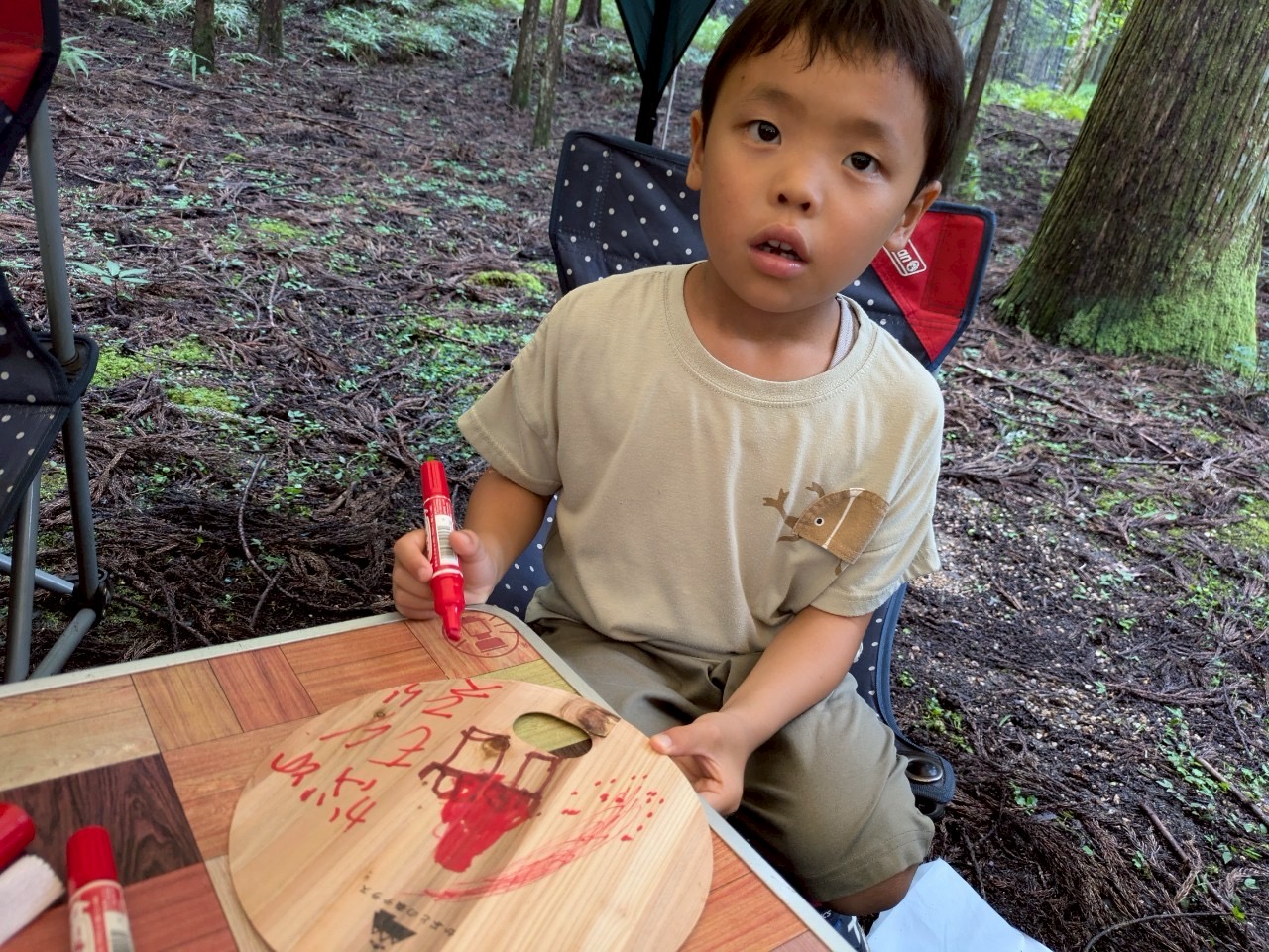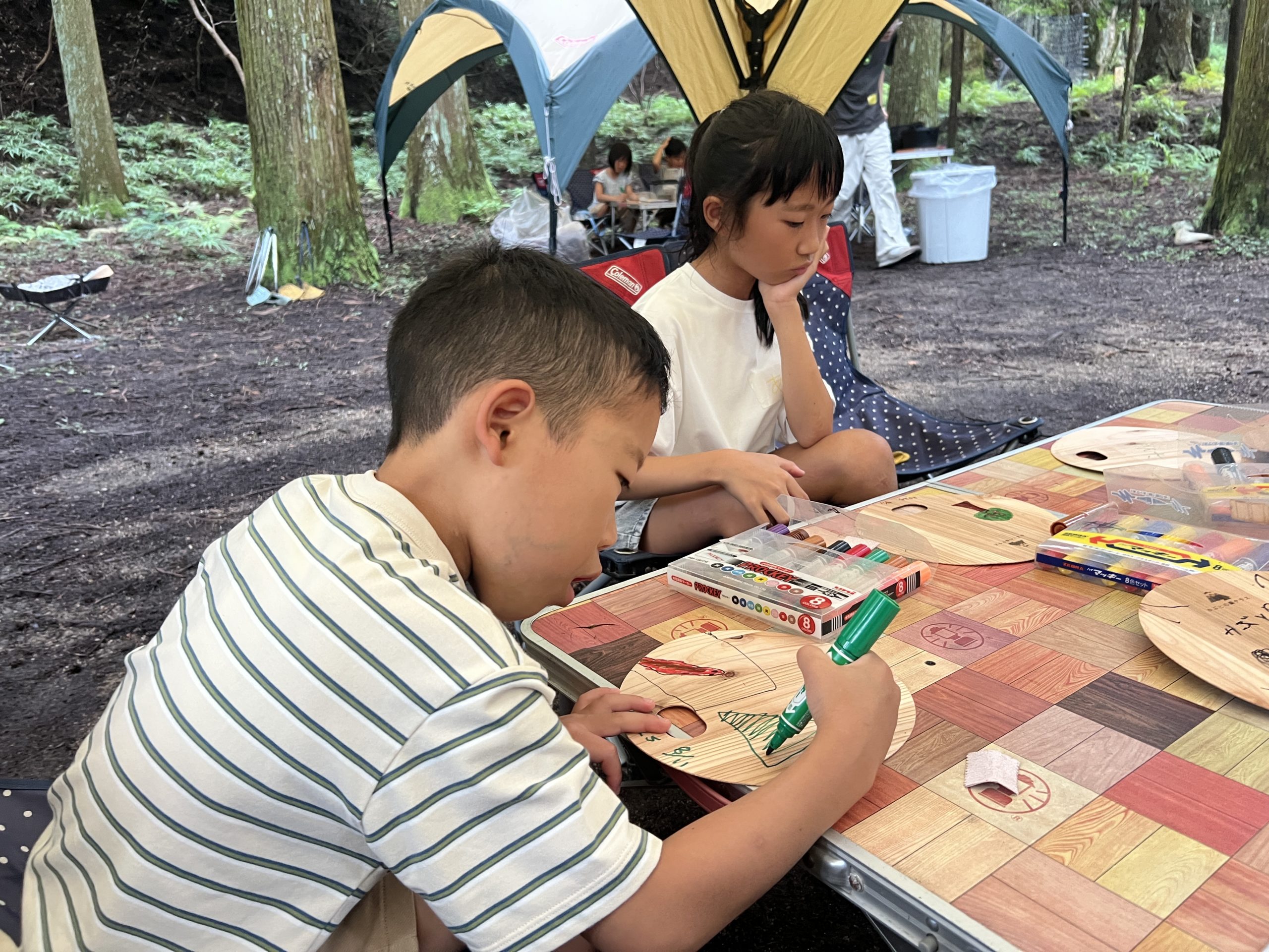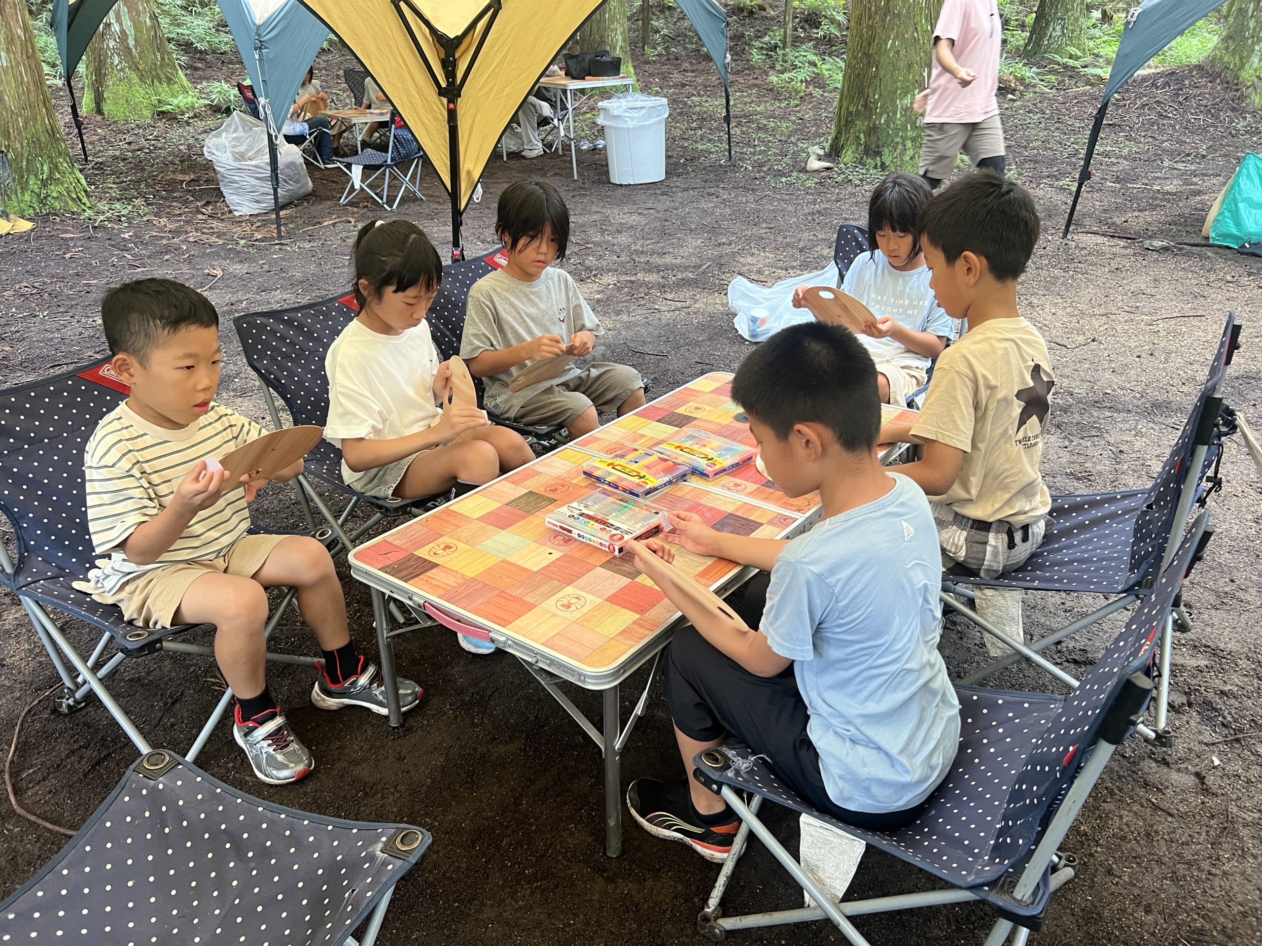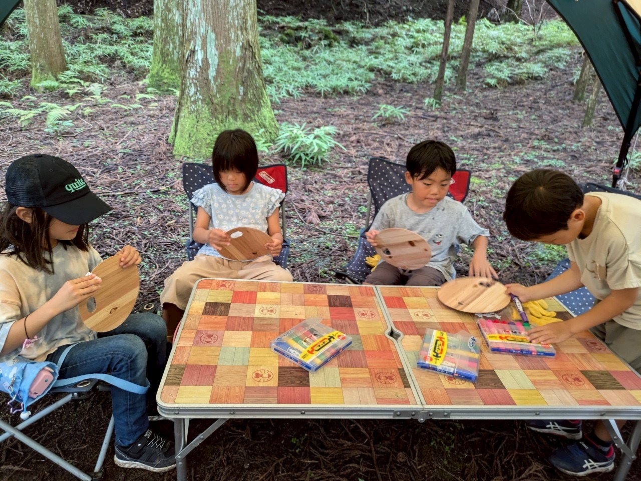 木のうちわをやすりで削って、好きな絵を描いてお土産にしてもらいました🌈