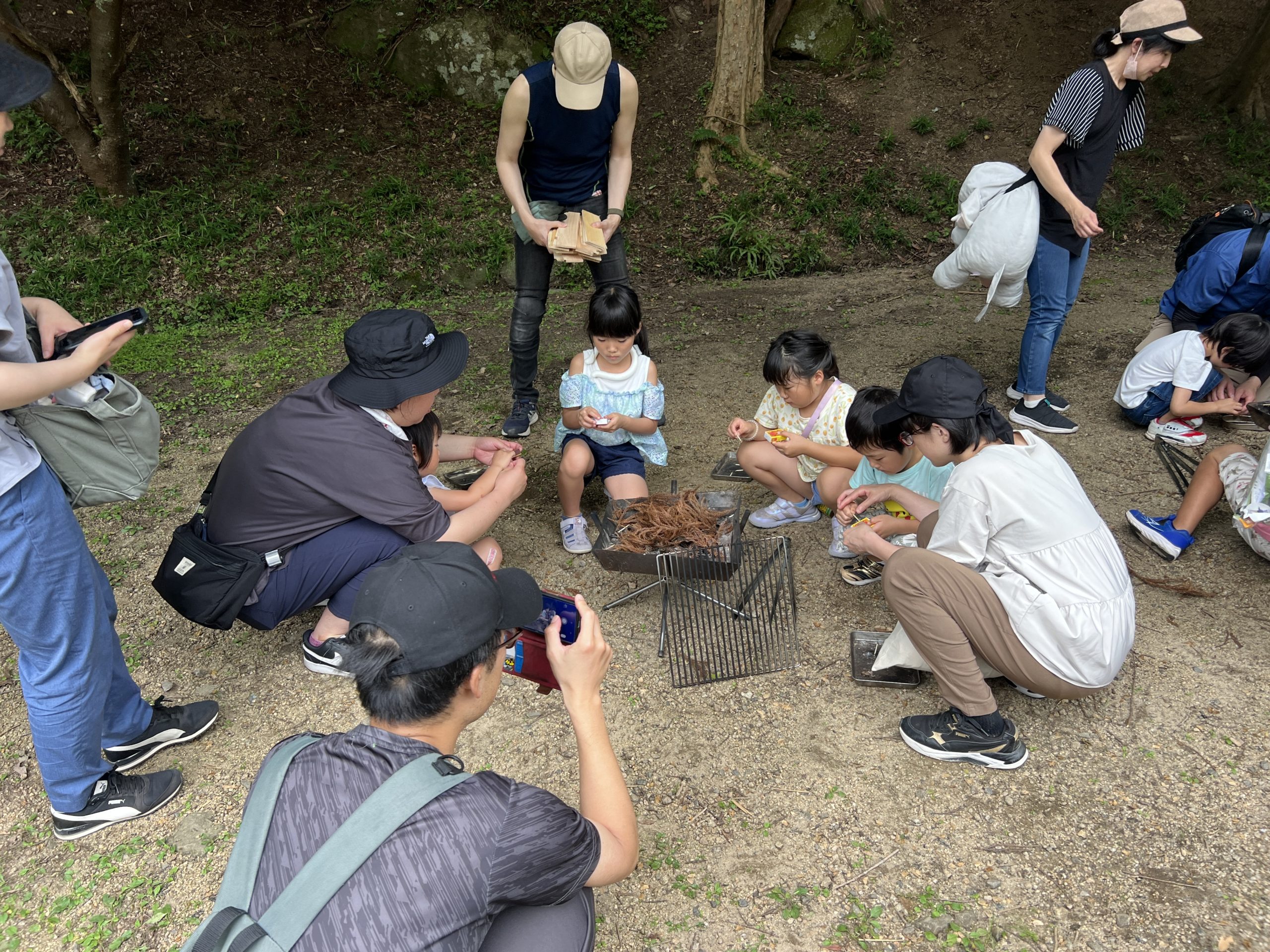 ★こちらはアルミ缶でごはんを炊く体験🔥実際にマッチを使って火起こしもしてもらいました🍙