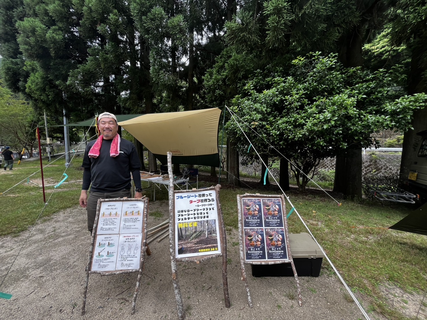★こちらはブルーシートでタープを建てる体験!