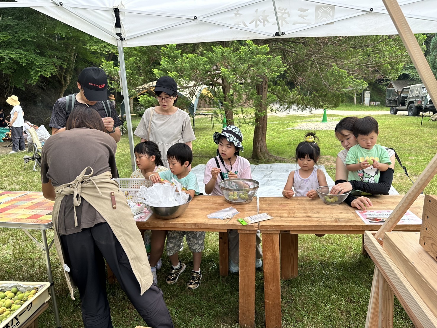 ★こちらは、かぶとの森の朝市と、保存食梅干しづくりワークショップ