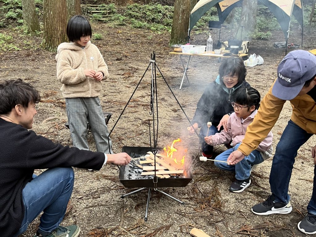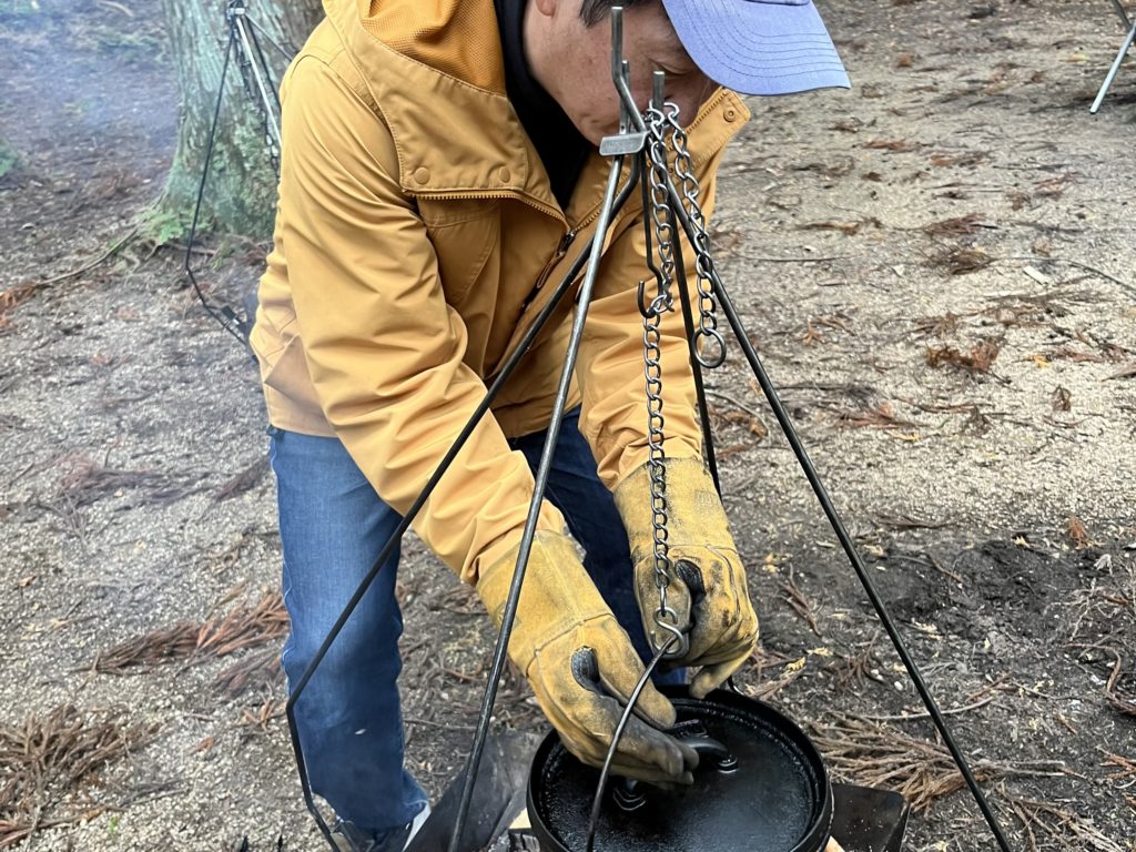 ダッチオーブンをのせるのは、ママさんパパさんがチャレンジ!💪
