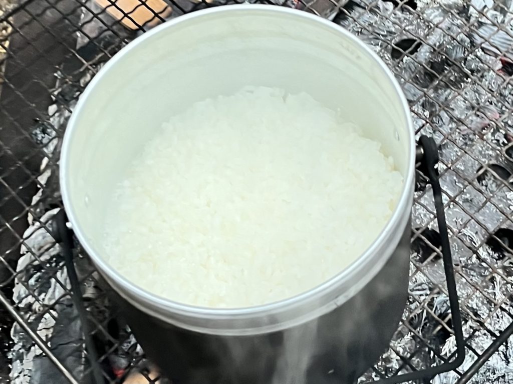 飯ごうで炊いたごはんもふっくらツヤツヤに美味しく炊き上がりました!🍚🔥✨