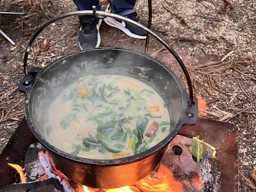 焚き火台でぐつぐつしていきます〜