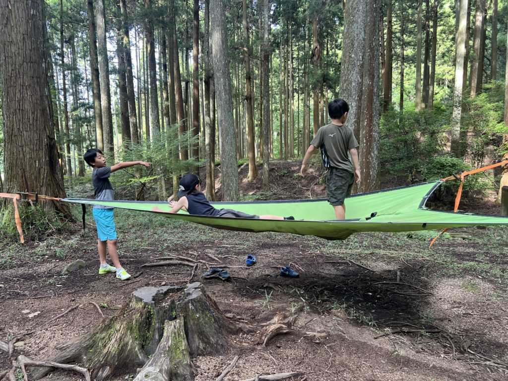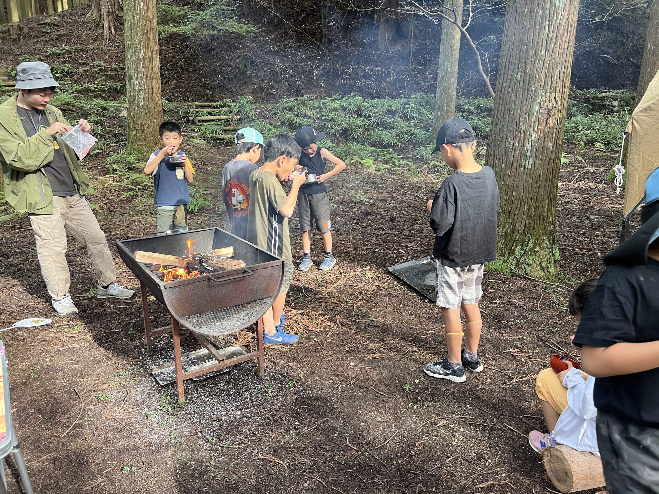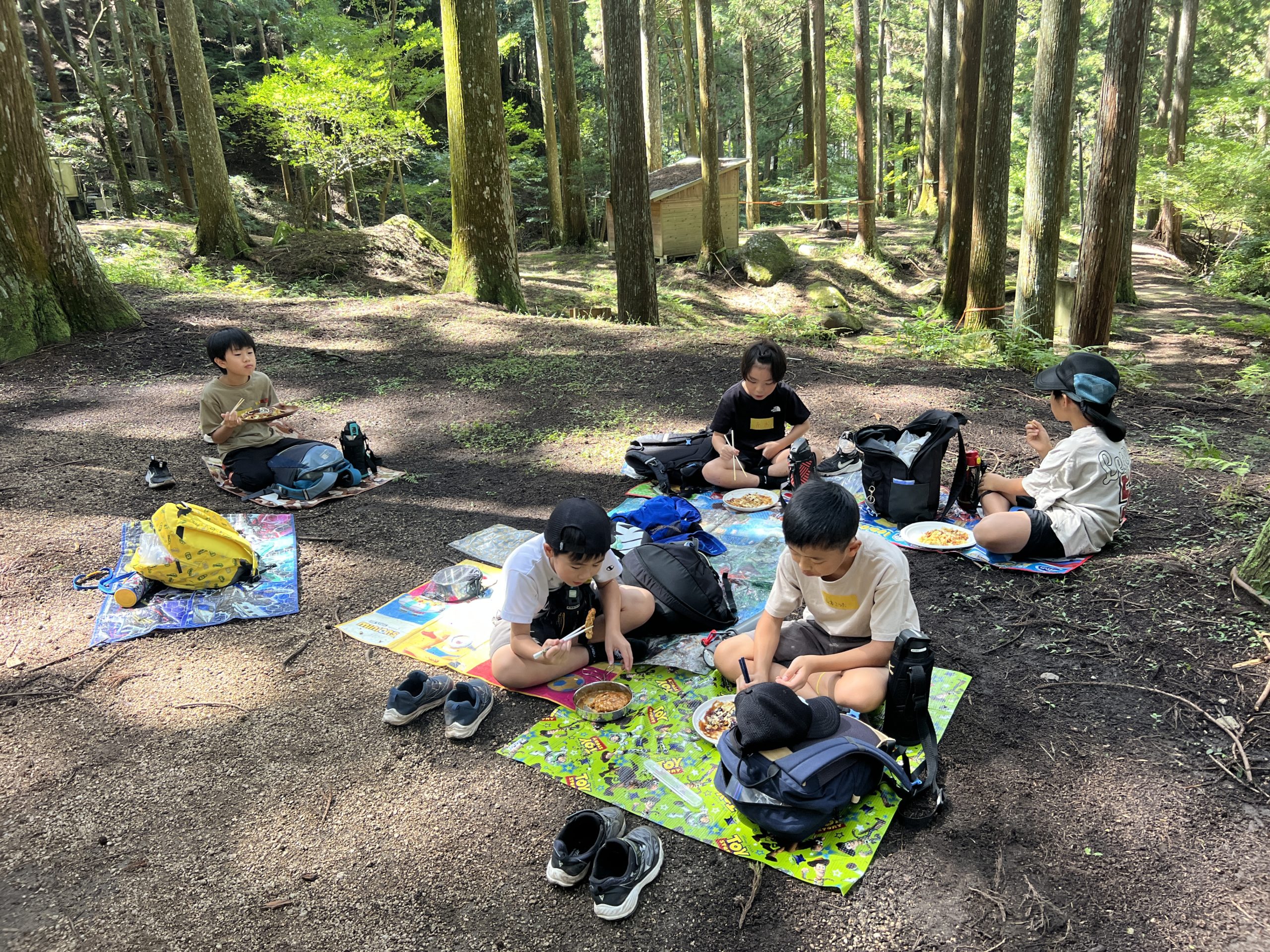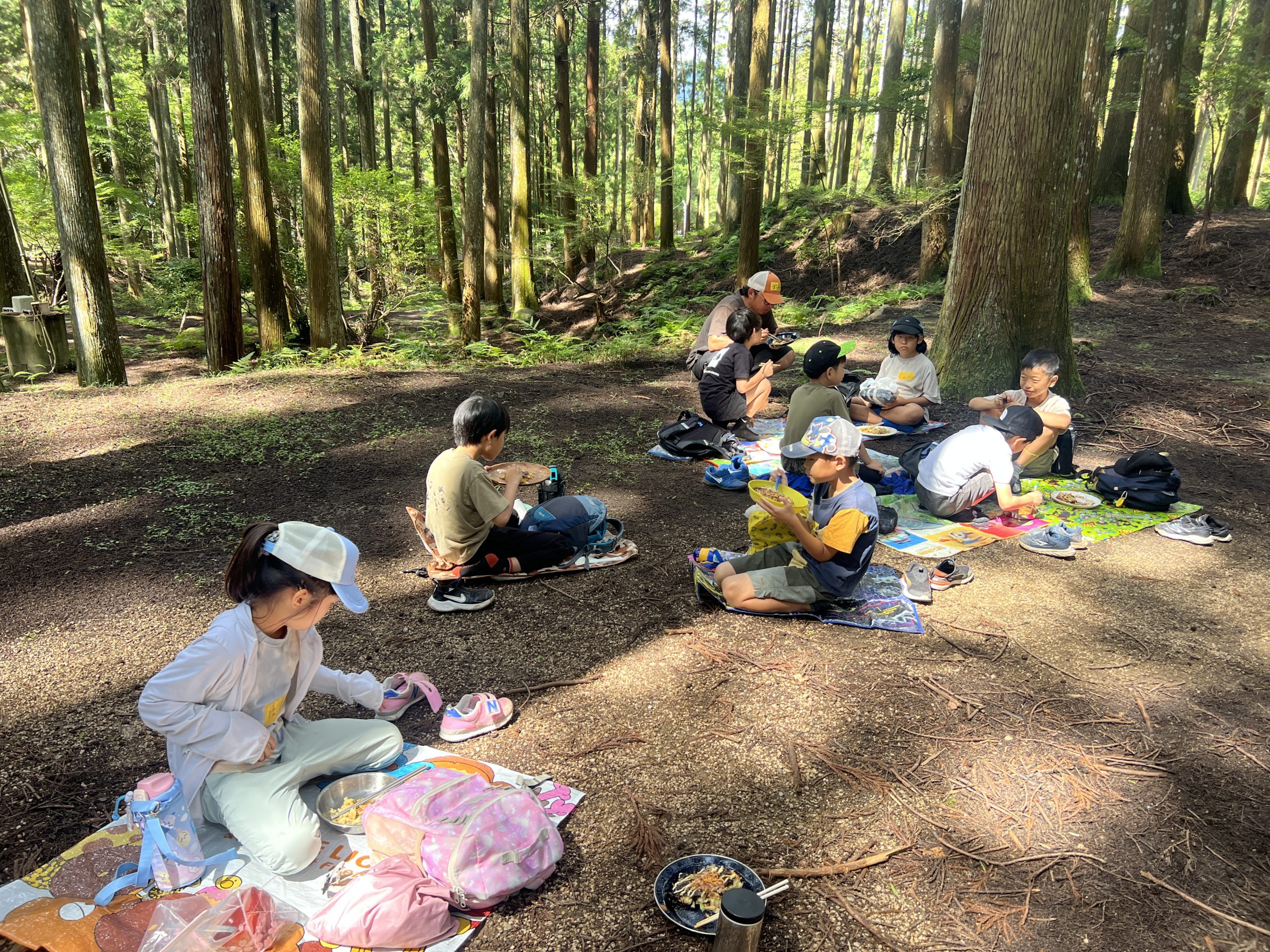 川から上がり、森の遊び場でおやつタイム〜🎶