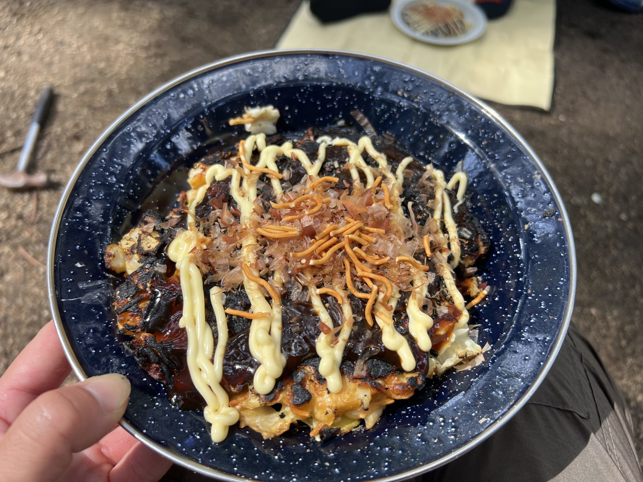 美味しいお好み焼きが完成しました〜!みんなでいただきます😋