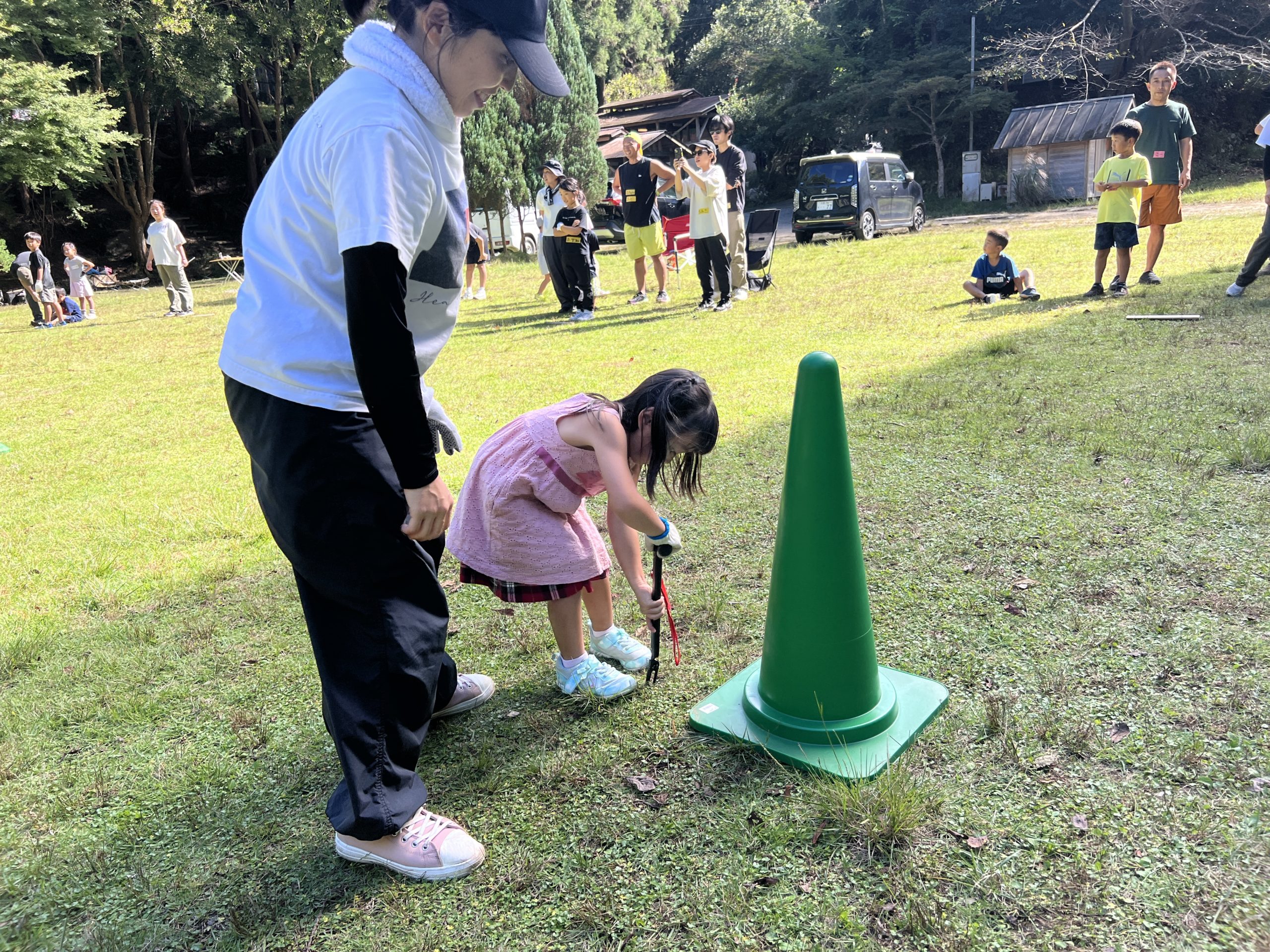 リレーのバトンは「ハンマー!」ペグをスピーディーに打っていき、バトンを繋ぎました🔨