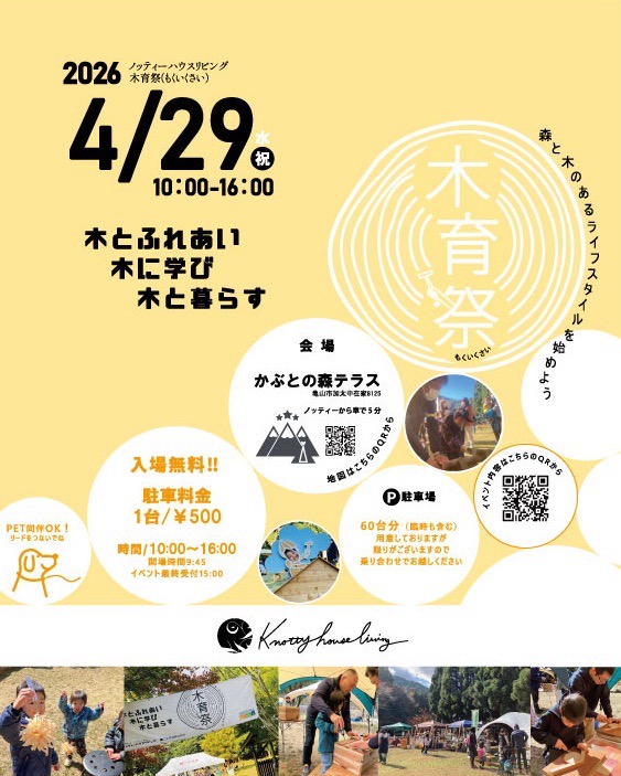4月は29(水・祝)、ノッティーハウスリビング主催「木育祭」と同時開催!🚩