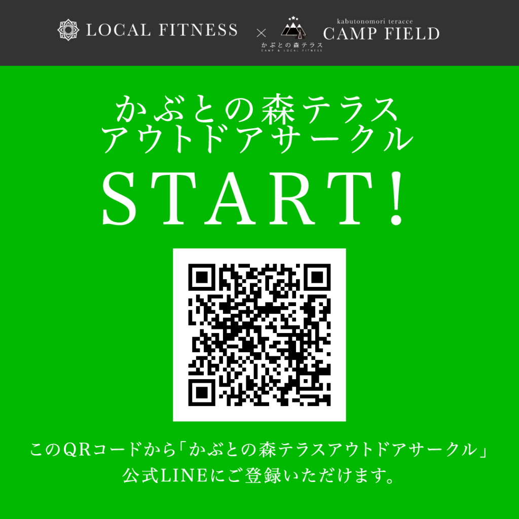 (1)かぶとの森テラスLOCAL FITNESS公式LINE かぶとの森テラスLOCAL FITNESS公式LINE(かぶとの森テラスアウトドアサークル)、またはお電話、メールにてお申し込ください。 ご宿泊の方以外でもご予約を承らせていただきます。