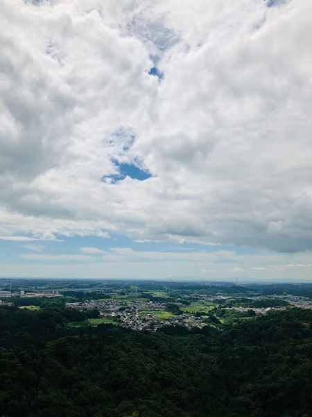 山頂や途中の巨石がせり出した展望所からは、亀山の街並みや周囲の山々を一望できます。