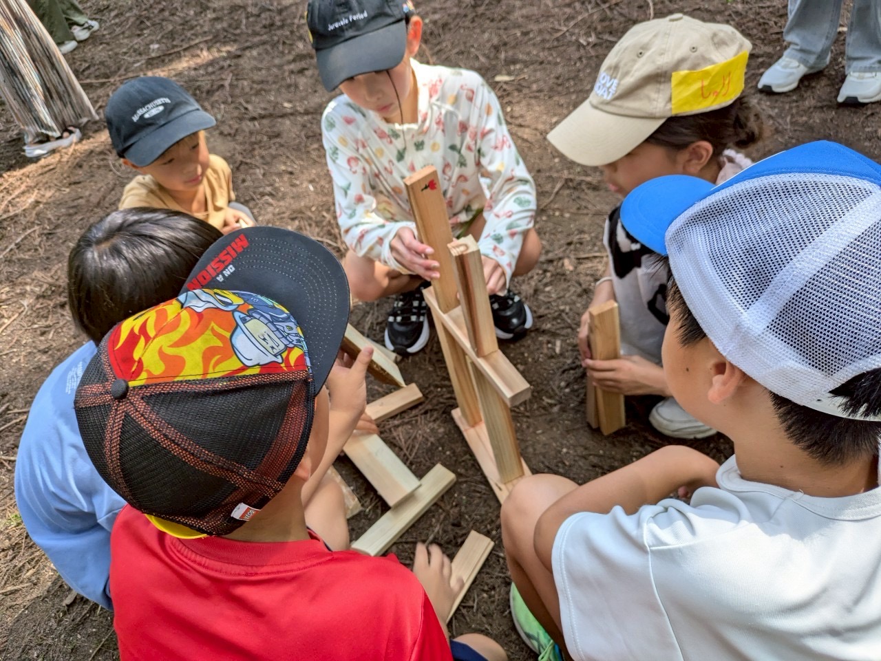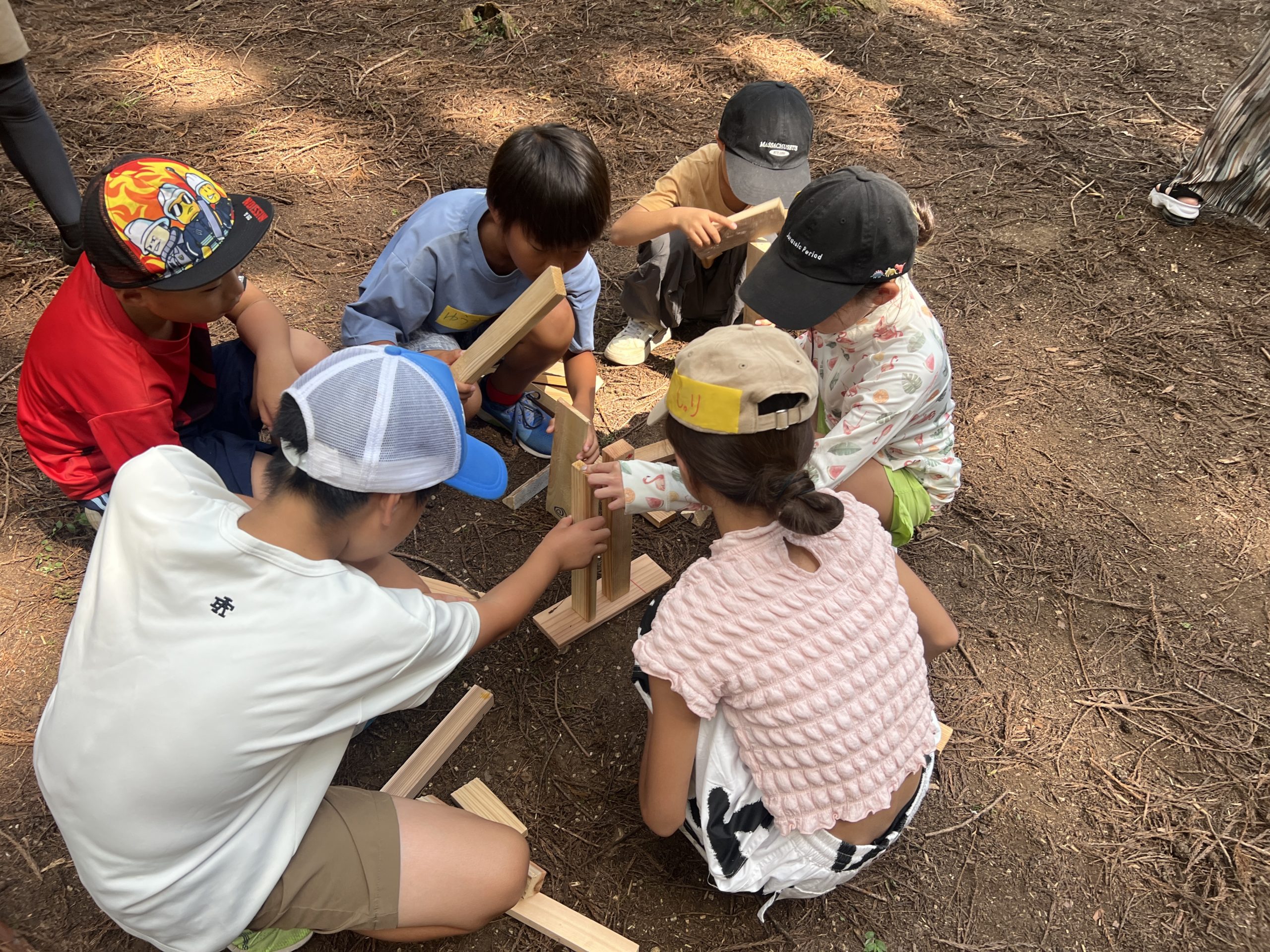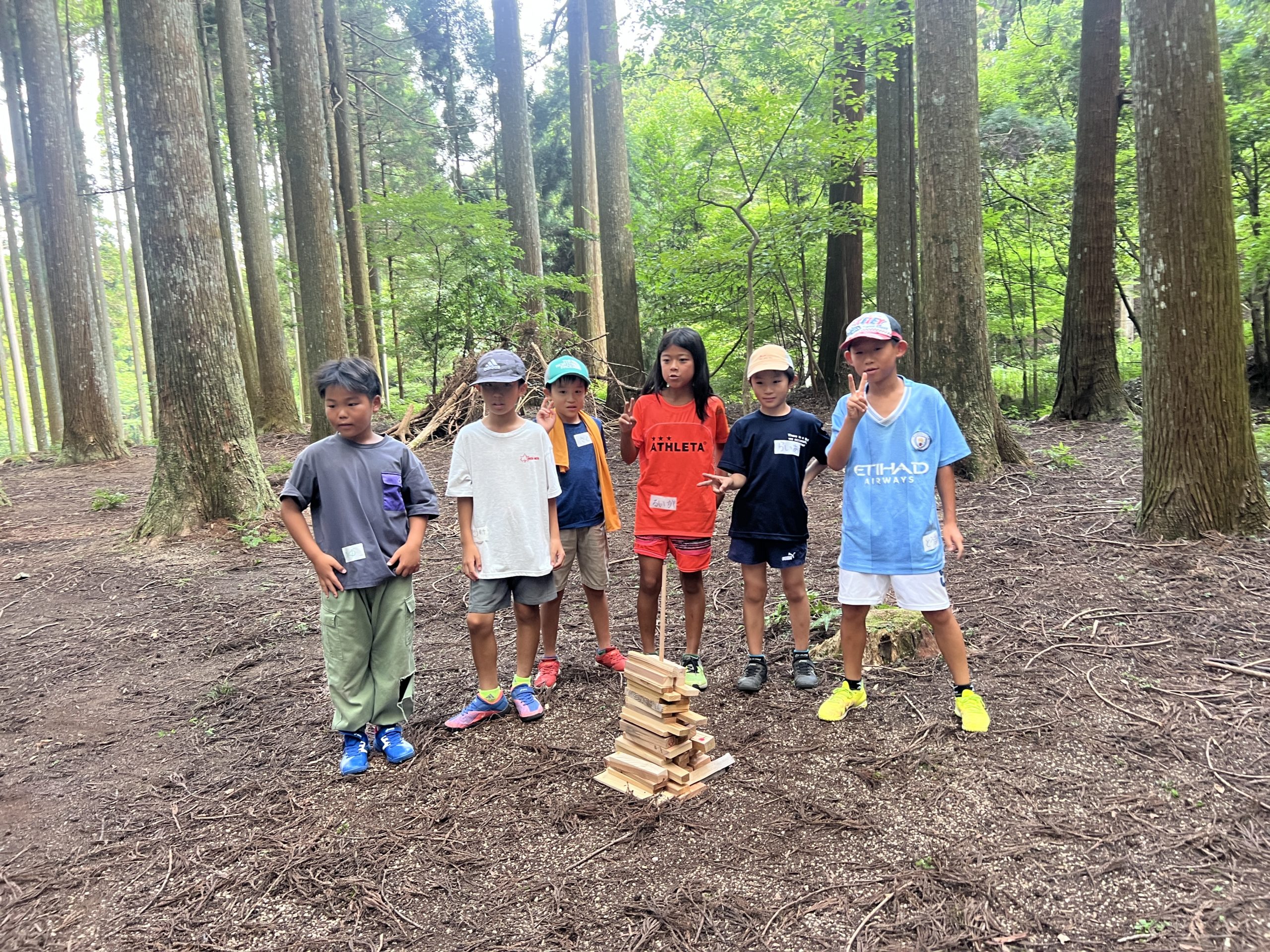 じゃんけんゲームと、薪の積み木タワー対決を行いました!