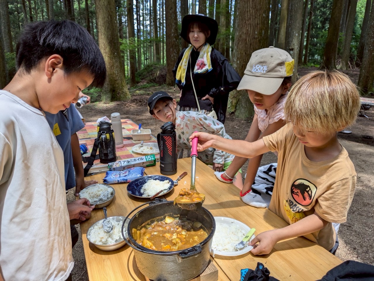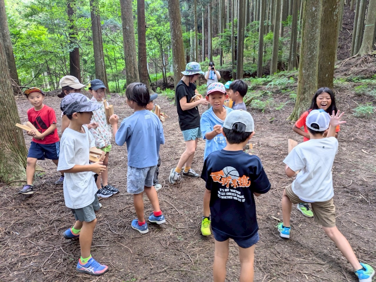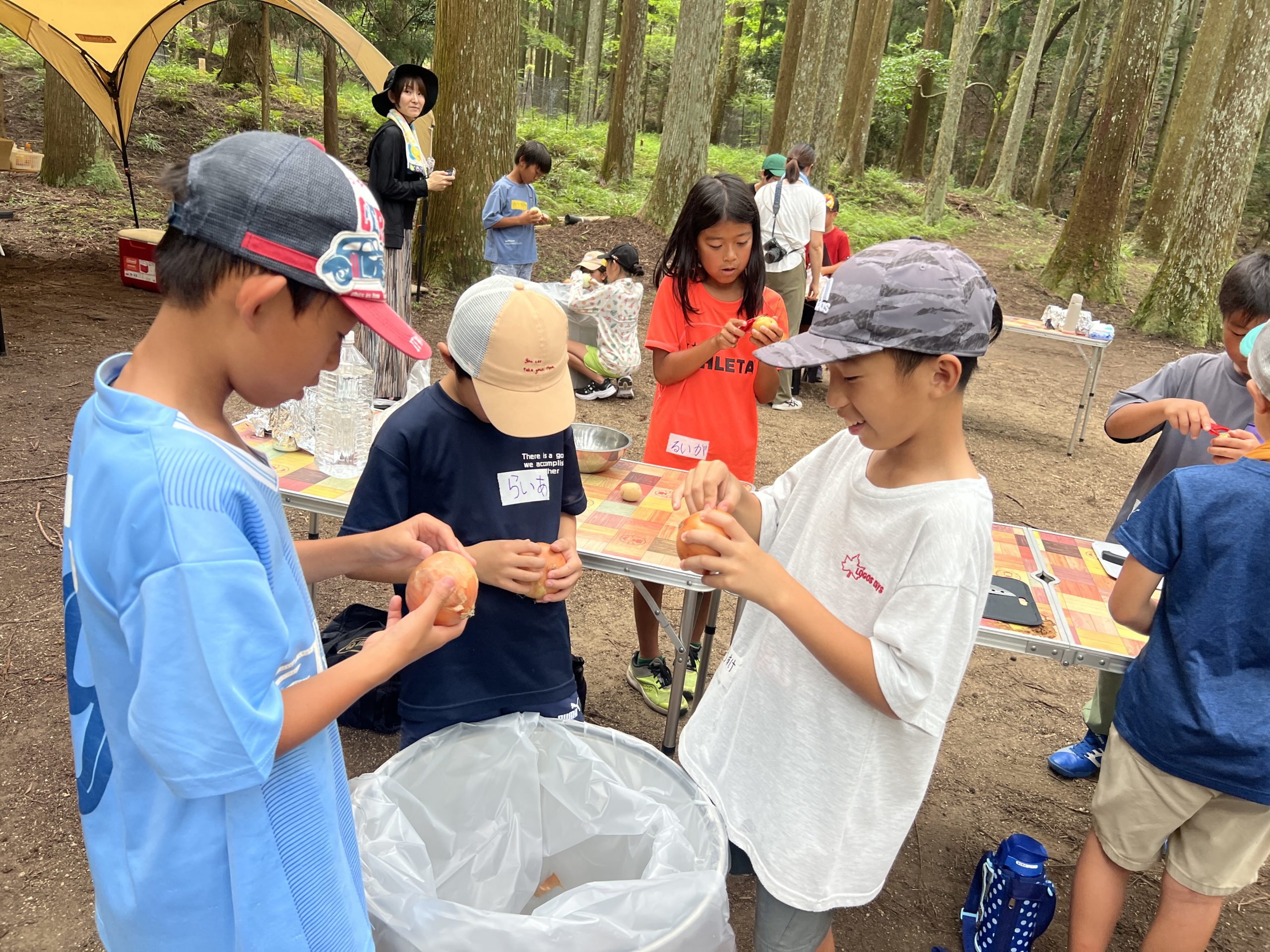 保護者の方は、役員さん数名だけで、かぶとの森テラススタッフと一緒に、2チームに別れてプログラムを行いました!