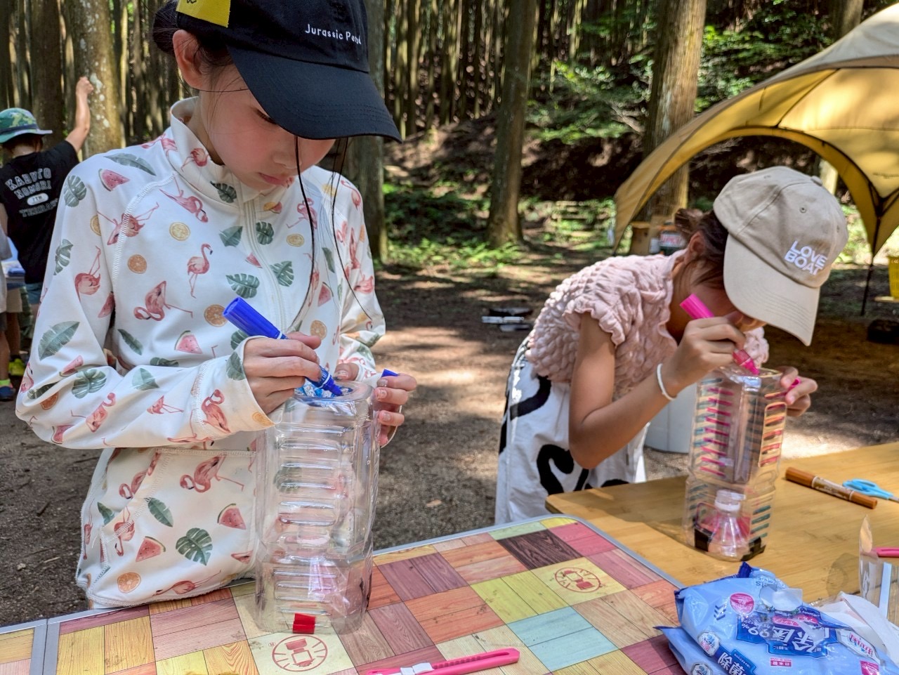 その前に、みんなでペットボトルを使って「魚の仕掛け作り」を行いました!